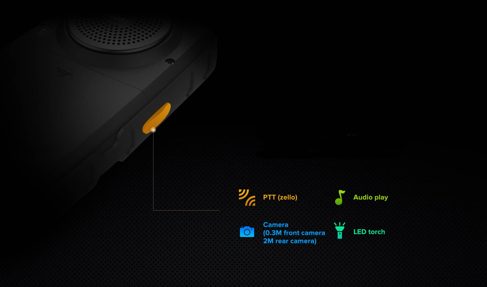 На боковой панели AGM M7 присутствует программируемая кнопка. Вы можете настроить ей для активации приёма-передачи в Zello, запуска камеры или фонарика.